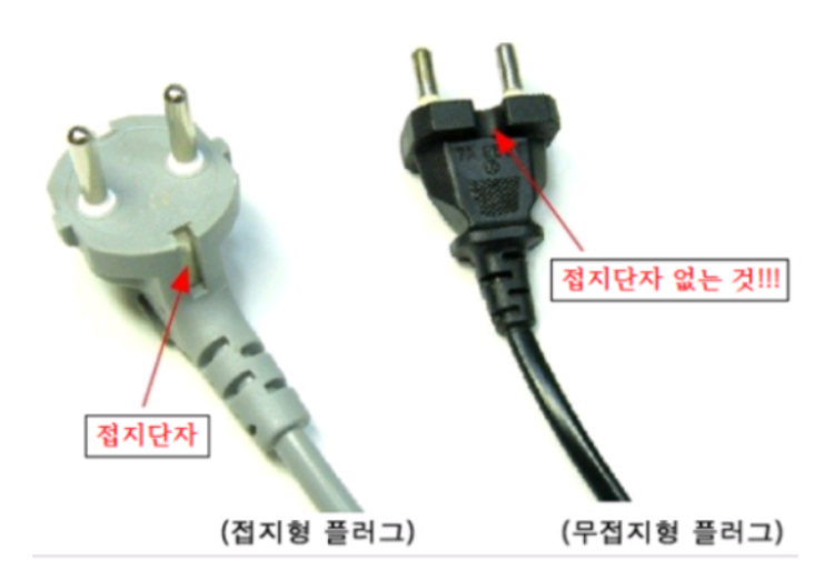 사진의 왼쪽이 접지, 오른쪽이 무접지 플러그입니다.(옆에 보이는 금속에 접지선 연결)